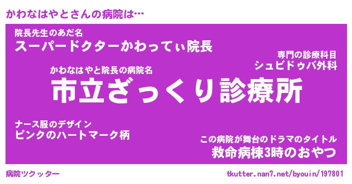 | 胡散臭い通販商品みたいなあだ名 | 『モテモテ間違いなし霊験あらたかなお札…その名も「かわなはやと」』 |