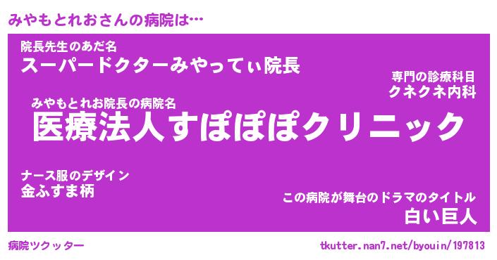 | ヒーロー風カッコイイあだ名 | 『スーパーミヤモトレオ』『黄金騎士ミヤ』 |