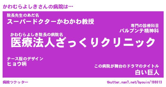 | 肩書あだ名 | 『かわむらよしき御曹司』 |