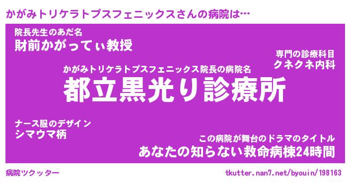 | ヒーロー風カッコイイあだ名 | 『スーパーカガミトリケラトプスフェニックス』 |