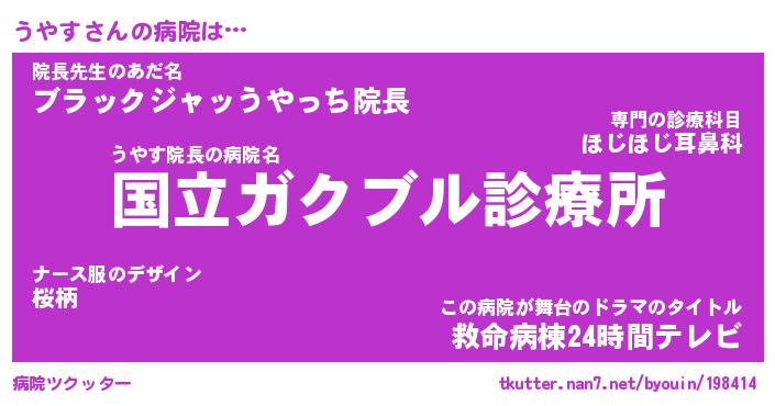 | ポケモン風あだ名 | 『ウヤチュウ』『ウヤスダネ』 |
