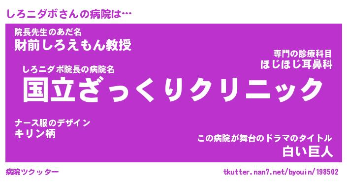 | 男性向けラノベタイトル風あだ名 | 『しろニダボの憂鬱』 |