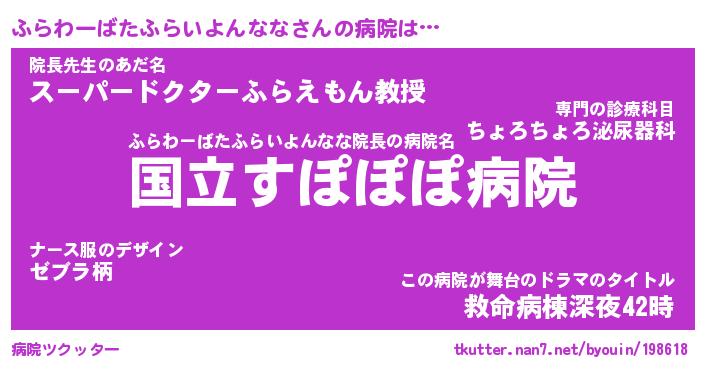 | 意味不明あだ名 | 『ペロリンふらわーばたふらいよんなな』 |