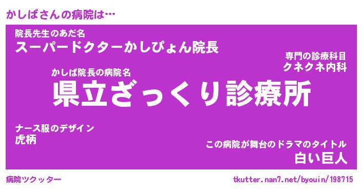| 男性向けラノベタイトル風あだ名 | 『かしばの憂鬱』 |