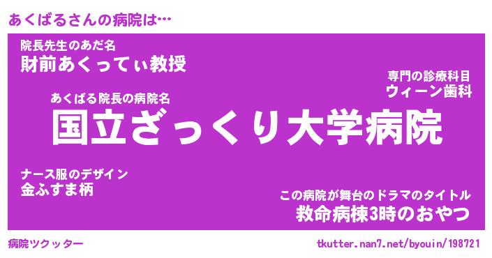 | 意味不明あだ名 | 『ペロリンあくばる』『永久保存あくばる』 |