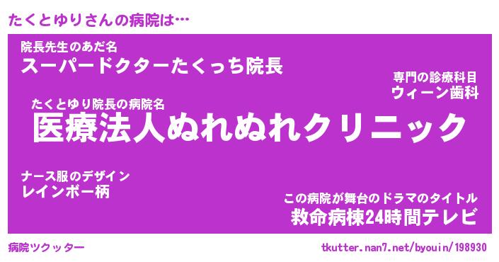 | 2回繰り返すあだ名 | 『たくたく』『たたくく』『ぬれぬれ』 |