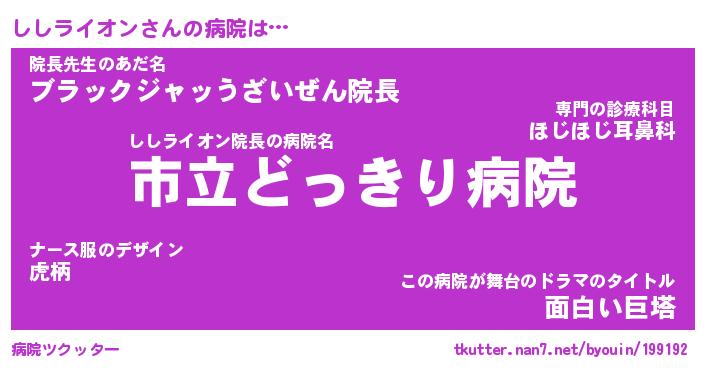 | 男性向けラノベタイトル風あだ名 | 『ししライオンの憂鬱』 |