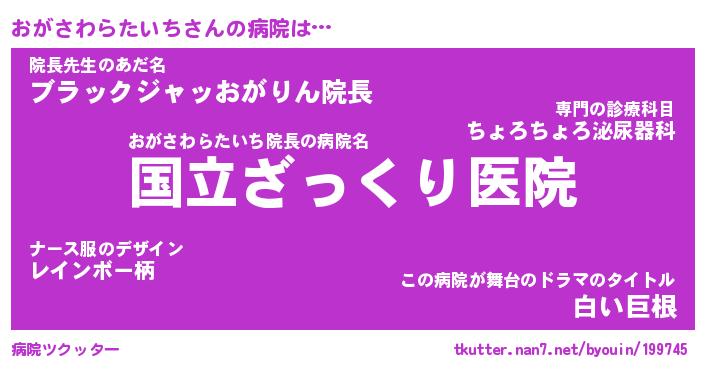 | 男性向けラノベタイトル風あだ名 | 『おがさわらたいちの憂鬱』 |