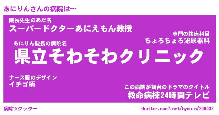 | 意味不明あだ名 | 『ペロリンあにりん』『永久保存あにりん』 |