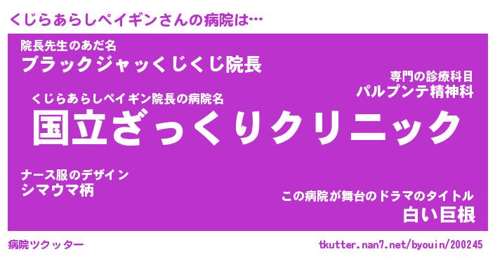 | ヒーロー風カッコイイあだ名 | 『スーパークジラアラシペイギン』 |