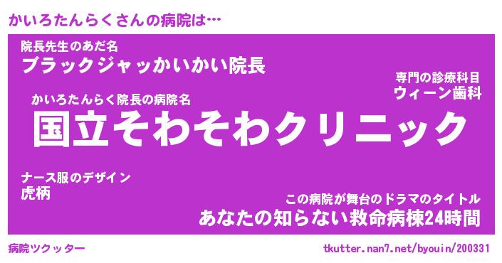 | 呪いの病院の様だw …「あさぎ」 | 3月30日 10:32 |