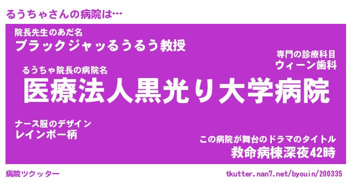 | 胡散臭い通販商品みたいなあだ名 | 『億万長者になれるブレスレット…その名も「るうちゃ」』 |