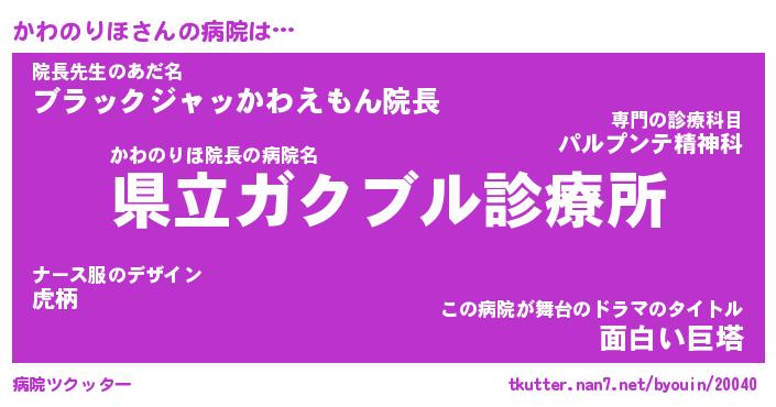 | ヘコむあだ名 | 『かわにゅー』『牛乳』『かわを』 |