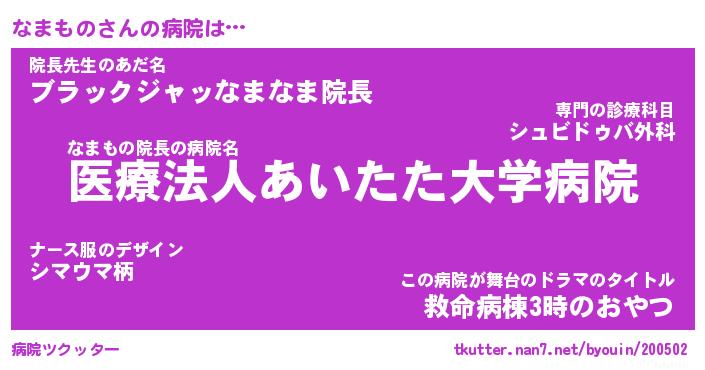 | 意味不明あだ名 | 『ペロリンなまもの』『永久保存なまもの』 |