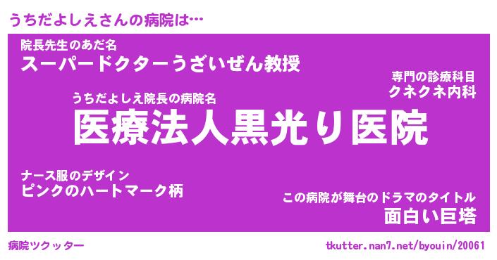 | 胡散臭い通販商品みたいなあだ名 | 『億万長者になれるブレスレット…その名も「うちだよしえ」』 |