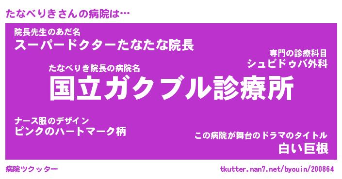 | ヘコむあだ名 | 『たなにゅー』『なまこ酢』『たなお』 |