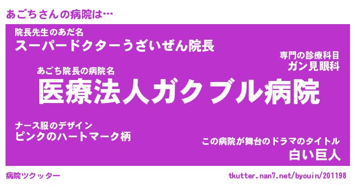| ヘコむあだ名 | 『あごにゅー』『つくし』『あごを』 |