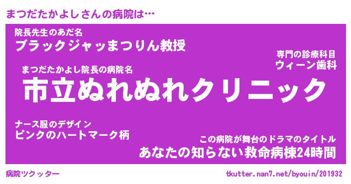 | 伝説のあだ名 | 『伝説のスナイパーまつだたかよし』 |