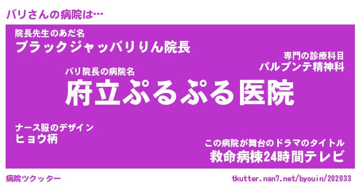 | 2回繰り返すあだ名 | 『バリバリ』『ババリリ』『ぬれぬれ』 |