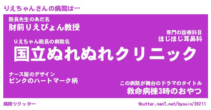 | 2回繰り返すあだ名 | 『りえりえ』『りりええ』『ぷるぷる』 |