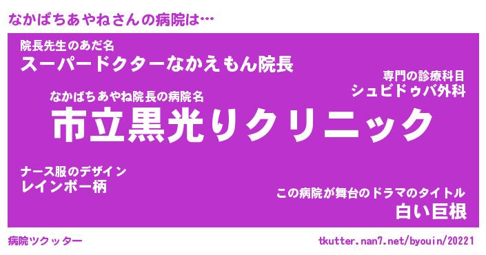 | 女子向けラノベタイトル風あだ名 | 『(仮)なかばちあやねのやんごとなき事情』 |