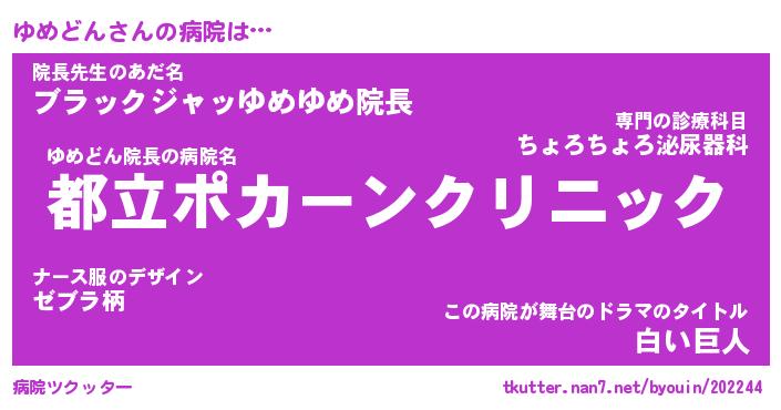 | ファンタジー風あだ名 | 『ユメフェル』『エターナルユメドンー』 |