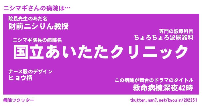 | ピコ太郎風あだ名 | 『ニコ十郎』『ピニ十郎』『ニシ六郎』 |