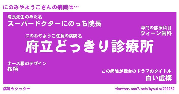 | 恥ずかしいあだ名 | 『プリティーにのみやようこ』『にのちん』 |