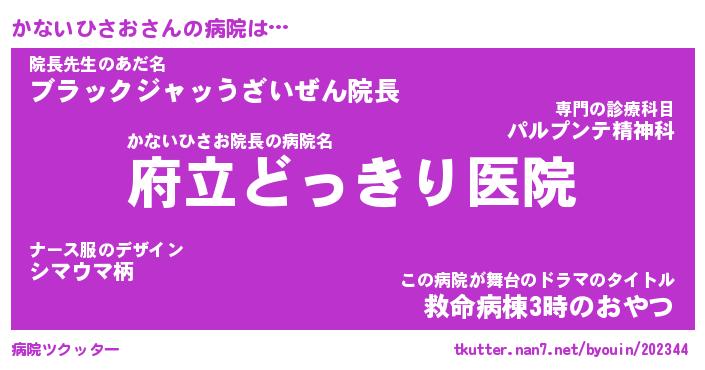 | 肩書あだ名 | 『かないひさお御曹司』 |