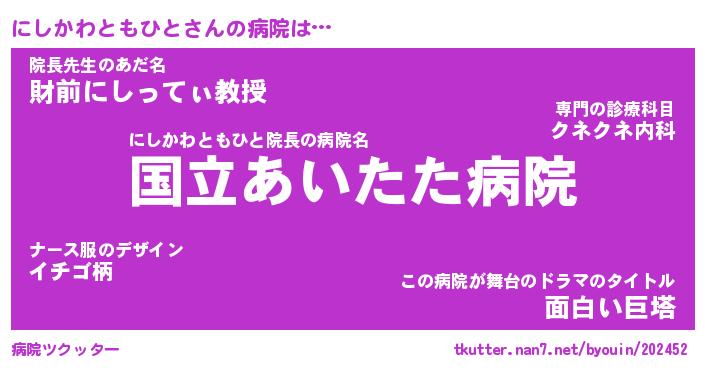 | 肩書あだ名 | 『にしかわともひと御曹司』 |