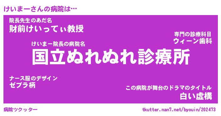 | 意味不明あだ名 | 『ペロリンけいまー』『永久保存けいまー』 |
