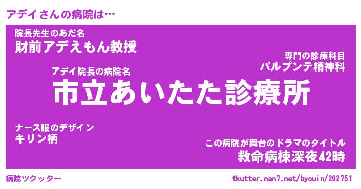 | 男性向けラノベタイトル風あだ名 | 『アデイの憂鬱』 |
