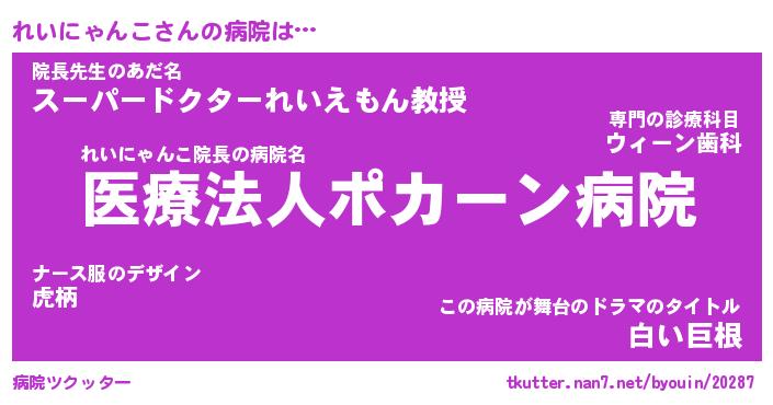 | 男性向けラノベタイトル風あだ名 | 『レイニャンコアートオンライン』 |