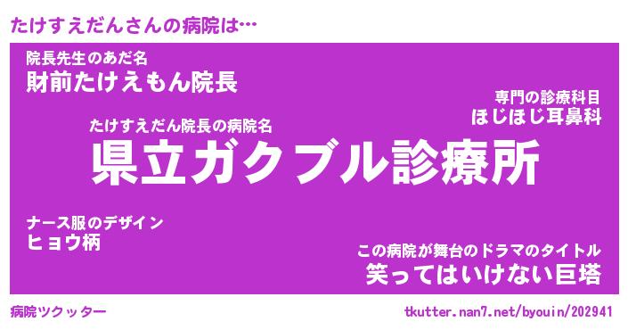 | ヘコむあだ名 | 『たけにゅー』『酢こんぶ』 |