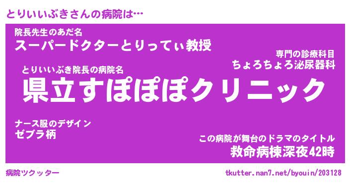 | 男性向けラノベタイトル風あだ名 | 『とりいいぶきの憂鬱』 |