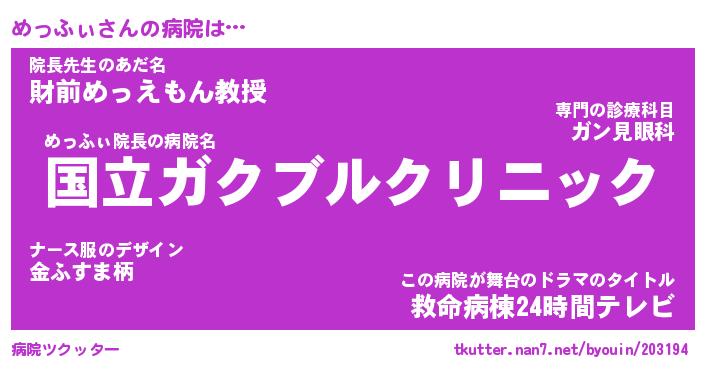 | ファンタジー風あだ名 | 『メッフェル』『エターナルメッフィー』 |