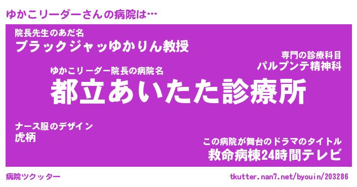 | ヘコむあだ名 | 『ゆかっふぃ~』『なまこ酢』 |
