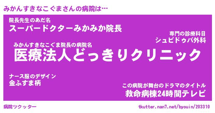| ツイッター | みかんすきなこぐまさんのツイッターID『dendenmushi_nyan』 |