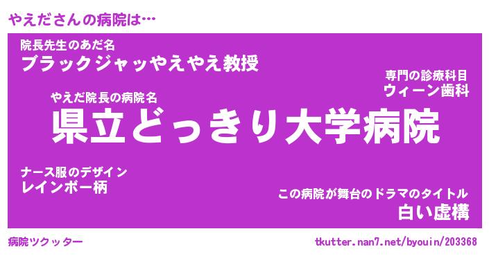 | ピコ太郎風あだ名 | 『ヤコ八郎』『ピヤ太郎』『ヤエ十郎』 |