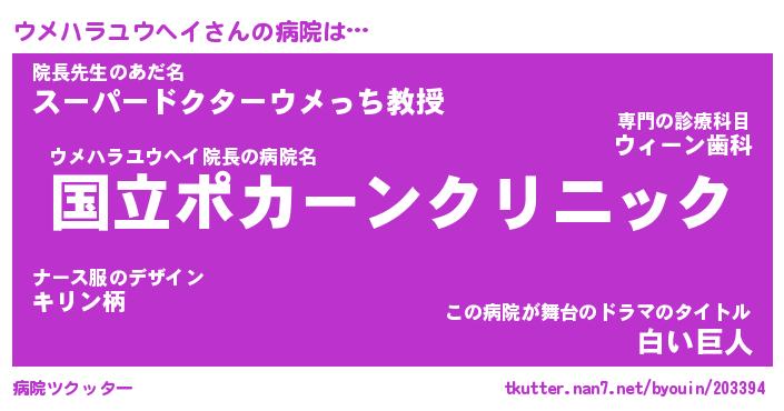 | ヒーロー風カッコイイあだ名 | 『スーパーウメハラユウヘイ』 |