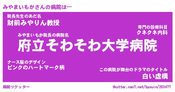 | ヘコむあだ名 | 『みやふぇ~』『レバニラ』『みやを』 |