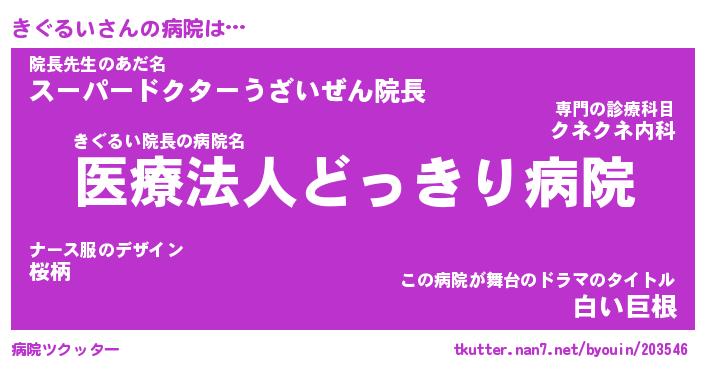 | 意味不明あだ名 | 『ペロリンきぐるい』『永久保存きぐるい』 |
