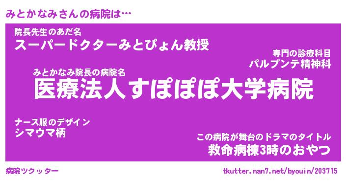 | 伝説のあだ名 | 『封印されしスナイパーみとかなみ』 |