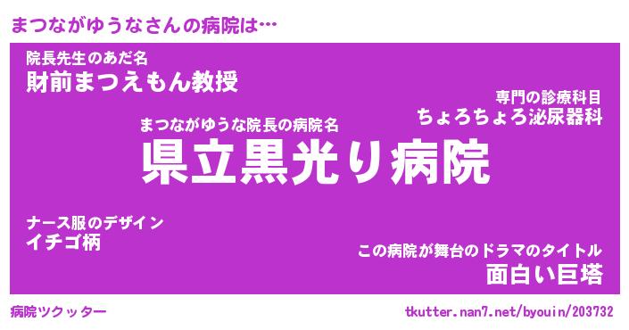 | 男性向けラノベタイトル風あだ名 | 『まつながゆうなの憂鬱』 |
