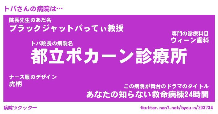 | 2回繰り返すあだ名 | 『トバトバ』『トトババ』『ぬらぬら』 |