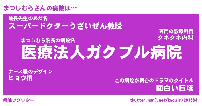 | ファンタジー風あだ名 | 『マツフェル』『エターナルマツシムラー』 |