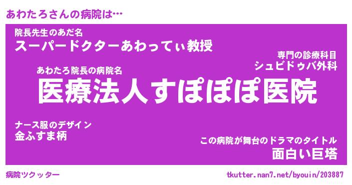 | ポケモン風あだ名 | 『アワチュウ』『アワタダネ』 |