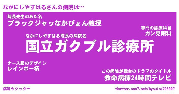 | 肩書あだ名 | 『なかにしやすはる店長』 |