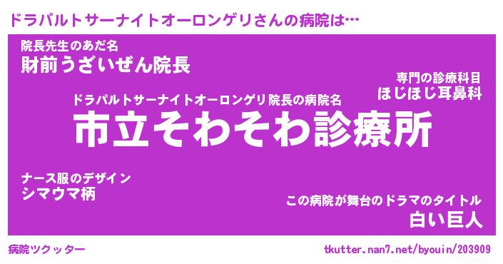 | 欧米人風あだ名 | 『マイケルドラパルトサーナイトオーロンゲリ』 |