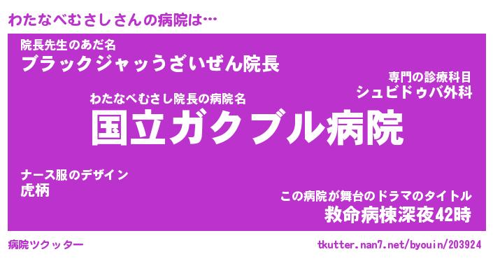 | ヘコむあだ名 | 『わたにゅー』『なまこ酢』『わたを』 |